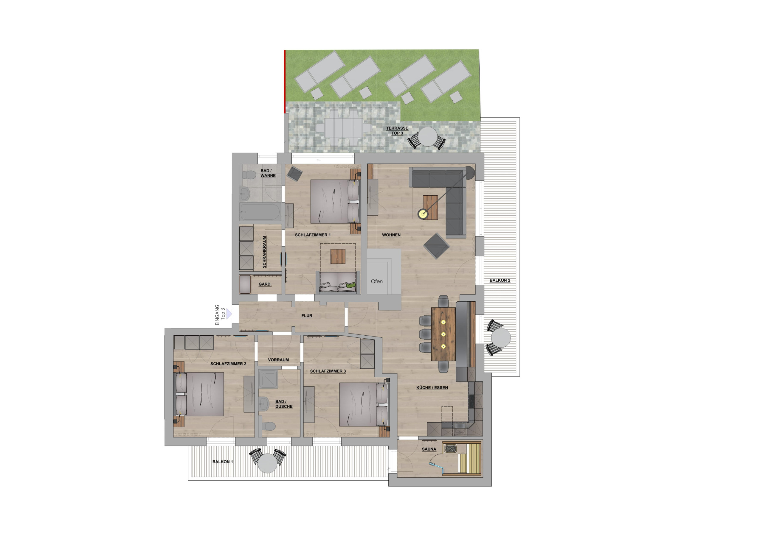 Premium Apartment – Private Sauna & große Sonnenterrasse mit Bergblick. 3 Schlafzimmer. 2 Badezimmer. 120 m². 1–10 Personen. Genießen Sie Ihren Urlaub und und buchen Sie zum Bestpreis direkt beim Eigentümer 1508 Vermietungs GmbH & Co KG.