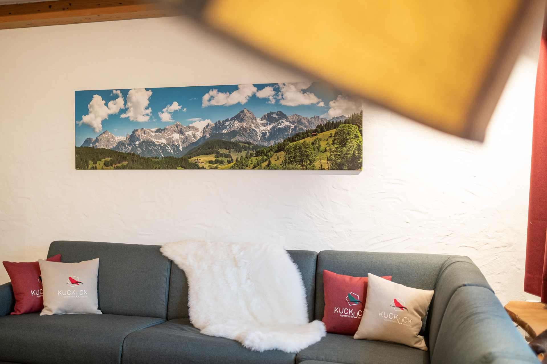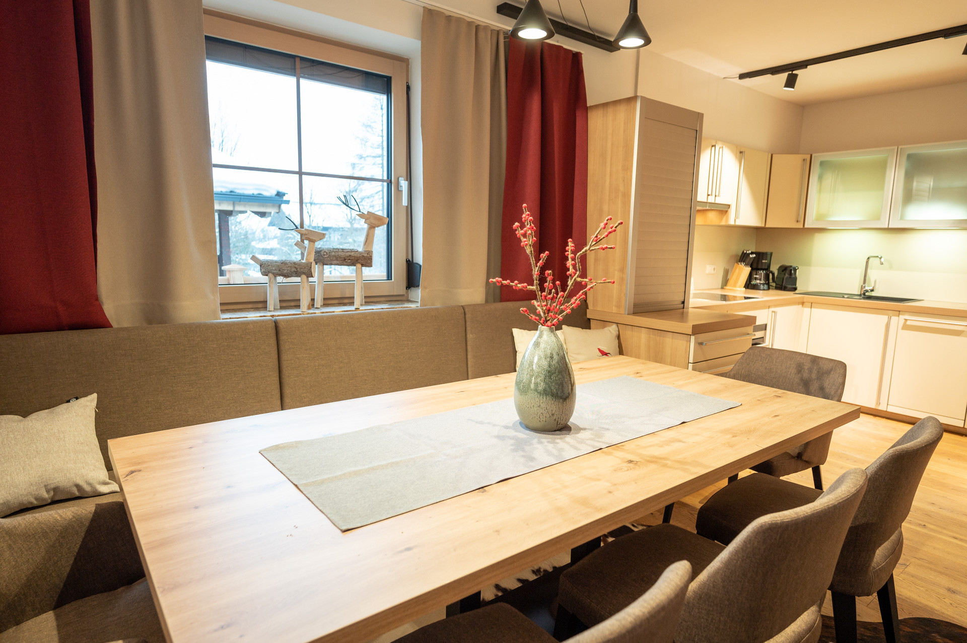 Willkommen im Kuckuck Hinterthal – Apartment Top 3. Diese großzügige Ferienwohnung verbindet modernen Wohnkomfort mit alpinem Stil und bietet Platz für bis zu 10 Personen. Warme Materialien, edles Holz und viel Licht schaffen eine gemütliche Atmosphäre mit authentischem Alpenflair – perfekt für Familien und Gruppen.